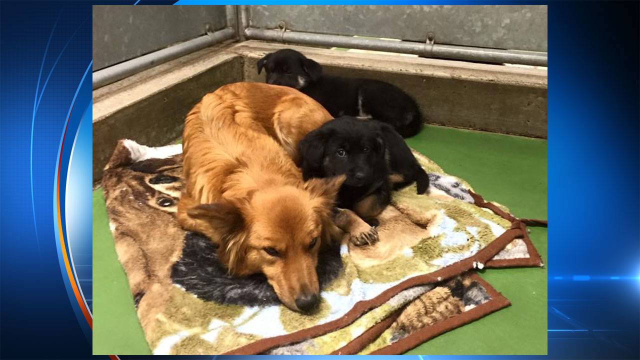Dog Slips Out Of Kennel To Comfort Foster Puppies